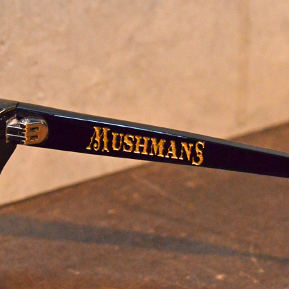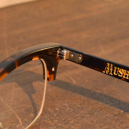 テンプル内側に、刻印でMUSHMANSロゴがゴールドに光る。