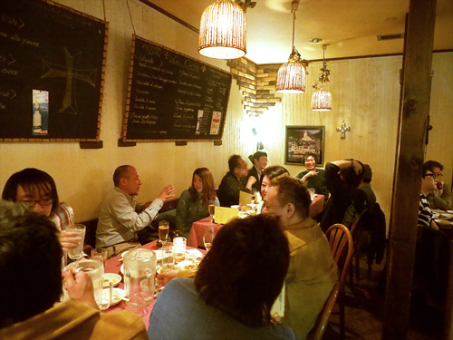 親友の両親と語る。