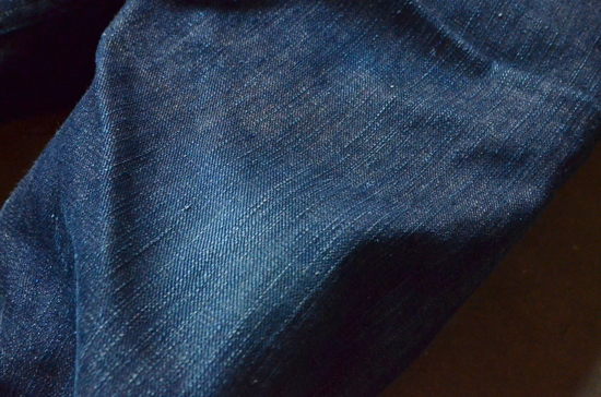FIBER DENIMと比べ生地厚が薄く、ややグリーンがかったファブリックである。