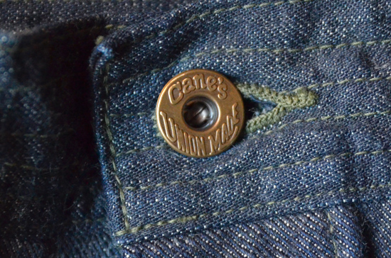 トップボタンには"Cane's UNION MADE"のドーナッツボタン。
