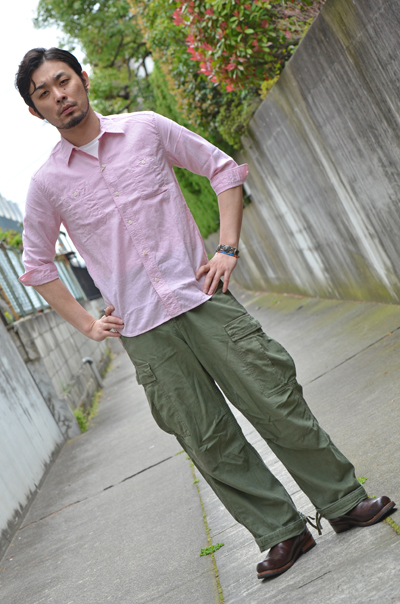 淡い色のピンクなので、男くさいM-51のパンツと。