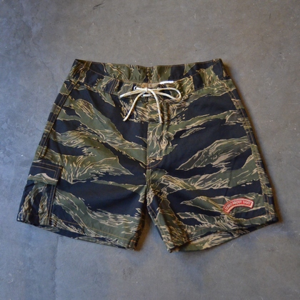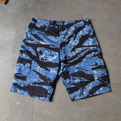 定番のタイガーカモをブルーにアレンジし雰囲気の良く仕上げられたショーツ。