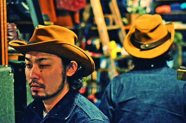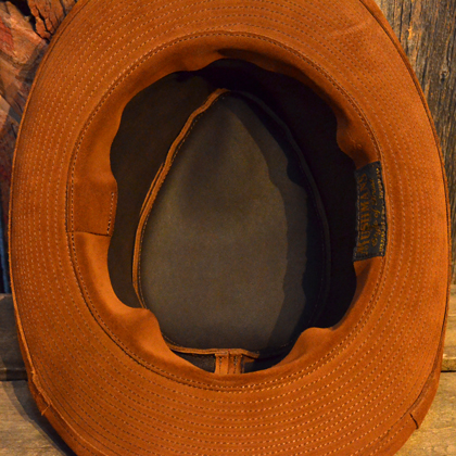 ブリムをしっかり癖付けして、テンガロン風に着用していただくとこんな感じ。