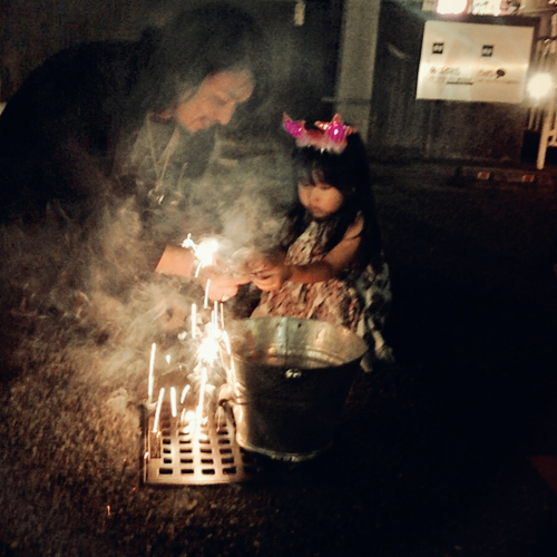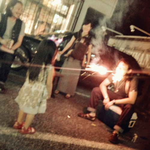 さらにそこに子供が来ると、花火でもやろうかとなり、店先で花火を始めてしまいました