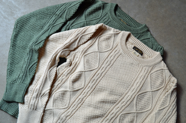ざっくりした雰囲気と色ムラのある編み糸による味のある風合いが魅力のケーブルニットです。