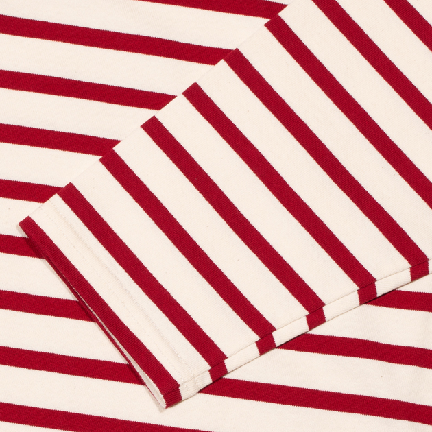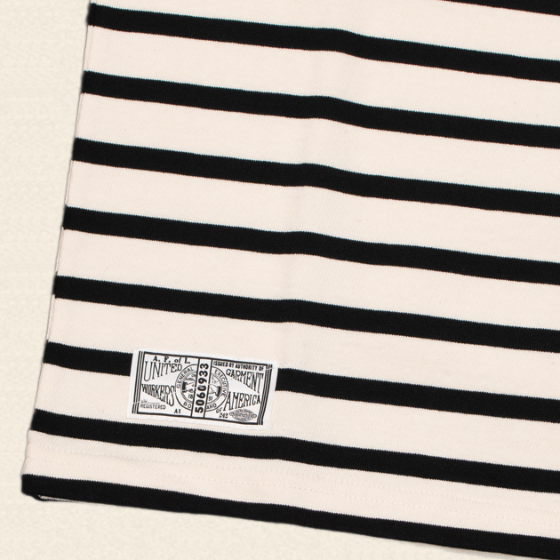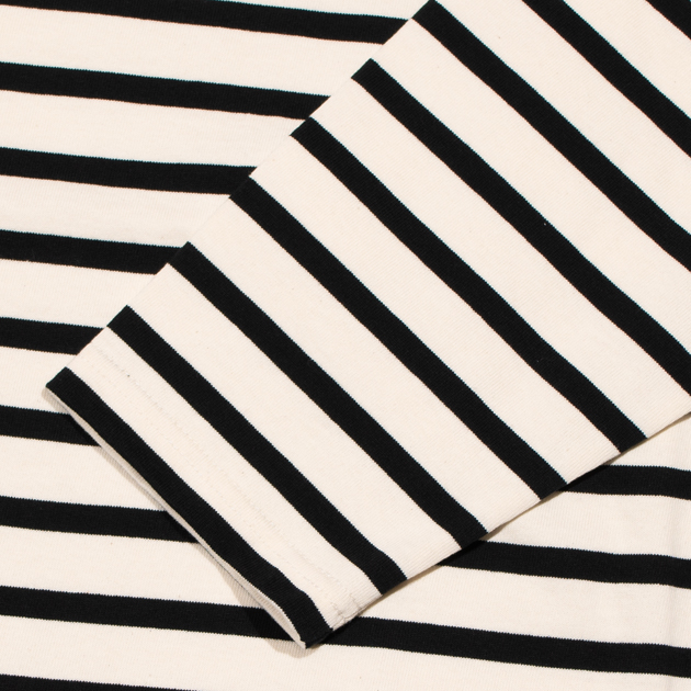 素材はコットン100%で、26番双糸を限界まで度目を詰めたボーダー生地を採用。