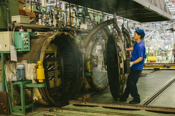 120℃で70分間、熱と圧力を加えることで、履き心地がよくシルエットも美しい靴が完成します。