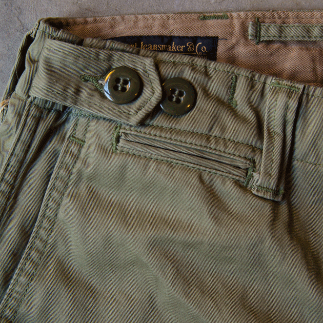 ヒップポケットの玉縁縫いなどは、トラウザースの流れを踏襲しておりますね。