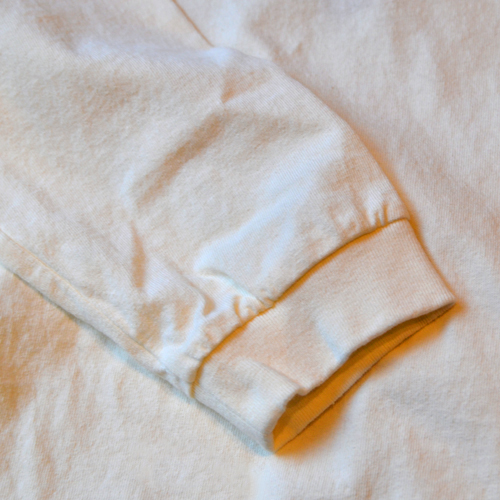 使用されている12番のムラ糸天竺は、未洗い状態からウォッシュをかけることで縮みが生じて、