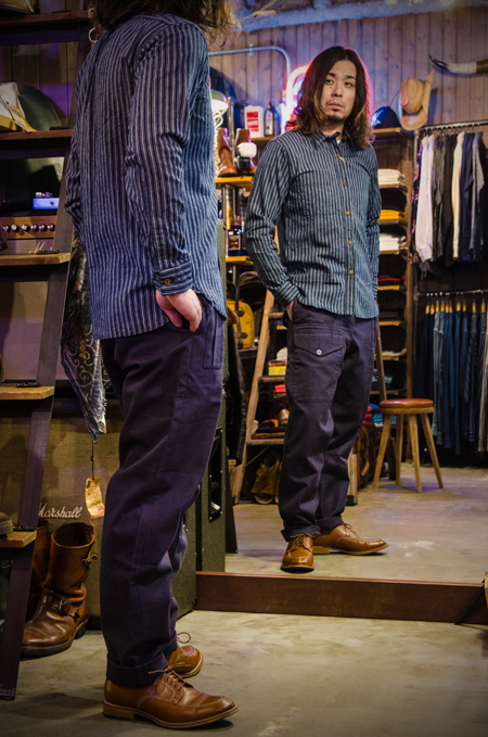 あえてワークパンツやARMYトラウザースとコーデしていただいても良いでしょう。