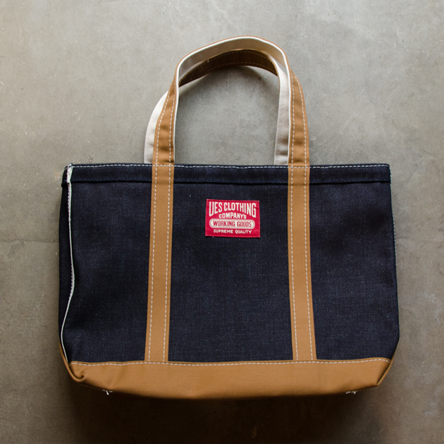 UESオリジナルのデニム生地を使用し、国内にて裁断・縫製を施した拘りのトートバッグ。