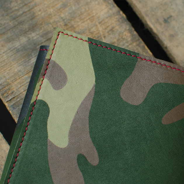 Cowhide(牛革) WOODLAND CAMOレザー。