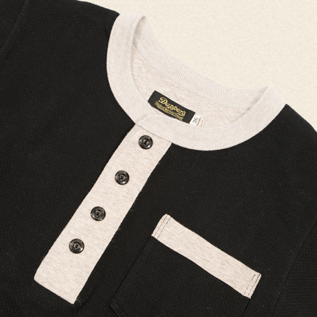 コットン天竺生地を使用したヘンリーTシャツ。