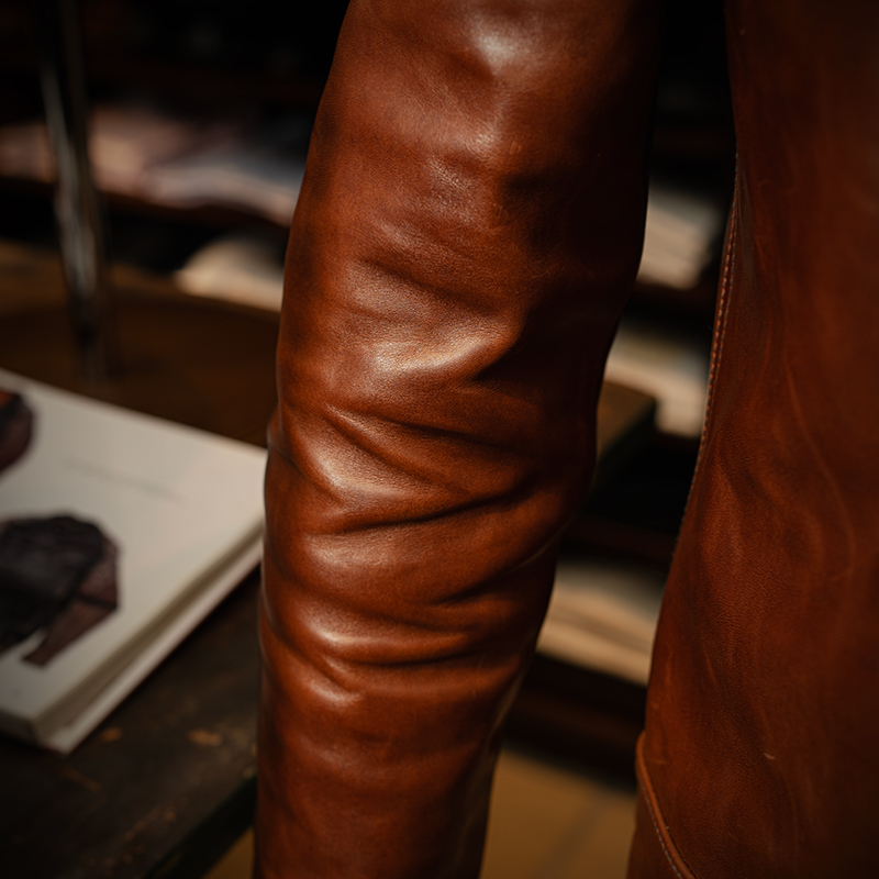 圧倒的な経年変化は、この素材を纏った方々からの賞賛の声を聞けば明らかであり、私自身もこのレザーとの出会いで人生が変わったと断言できるマテリアル。