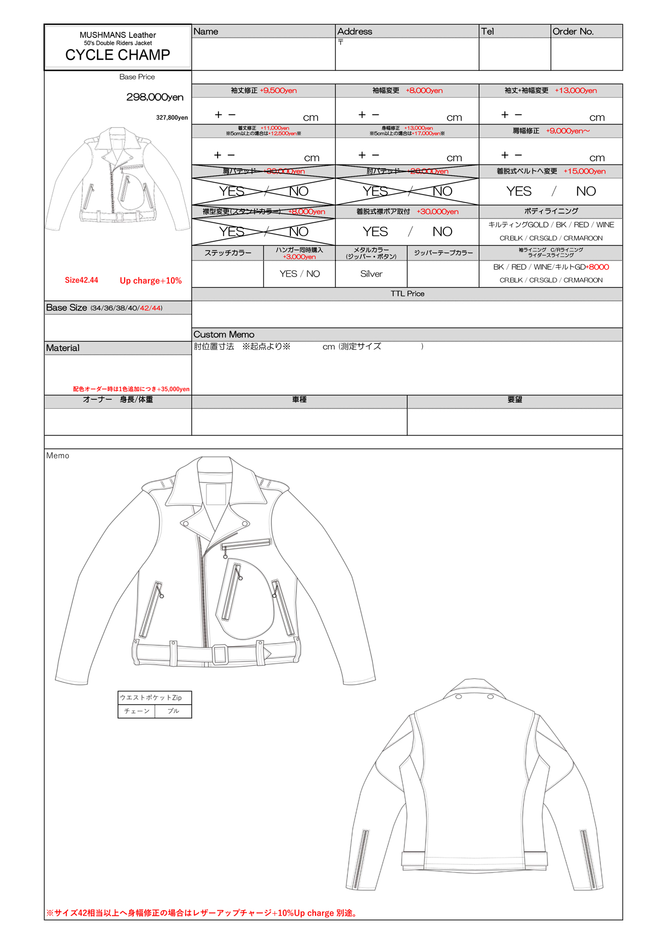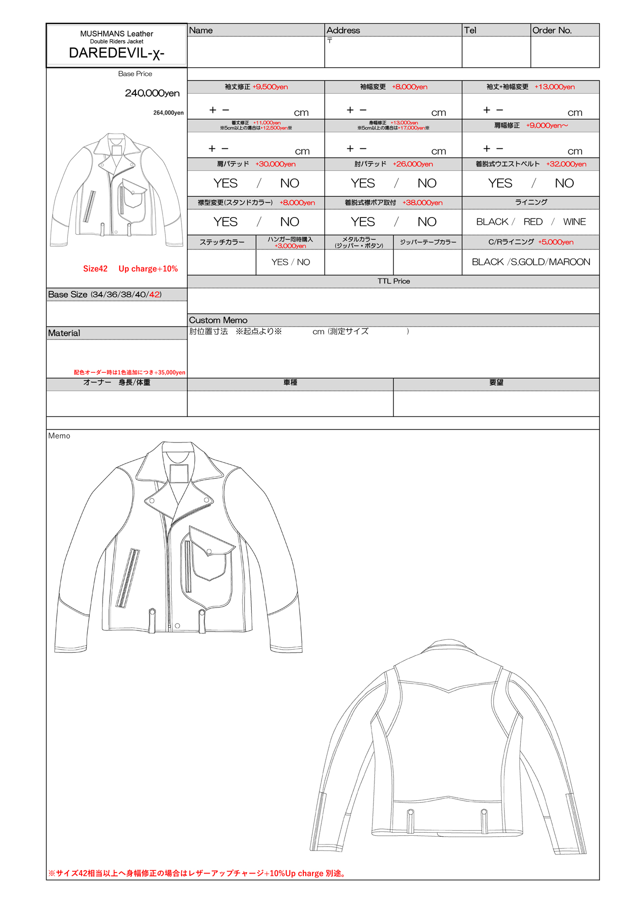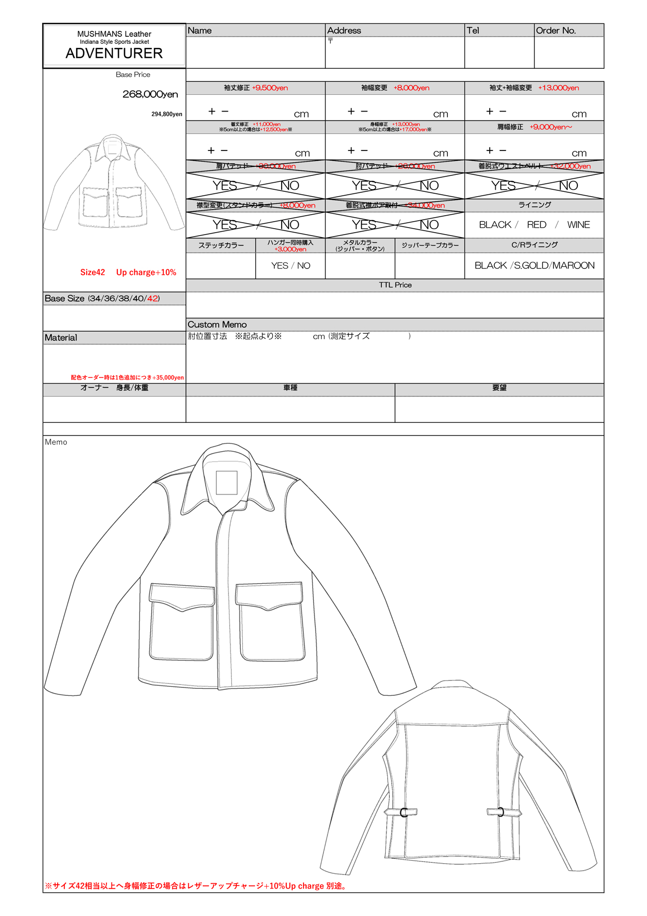 本日は、オプションなどを含めたオーダーシートを掲載いたしますので、ぜひこちらをご覧いただき、オーダーのシュミレーションをしてみてください!!