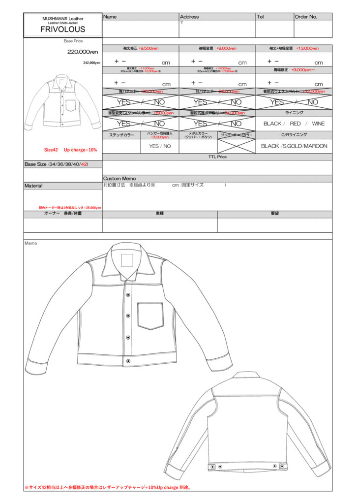 2026-27FW "MUSHMANS Leather" Custom Order Exhibition 【カスタムオーダーの詳細】について。