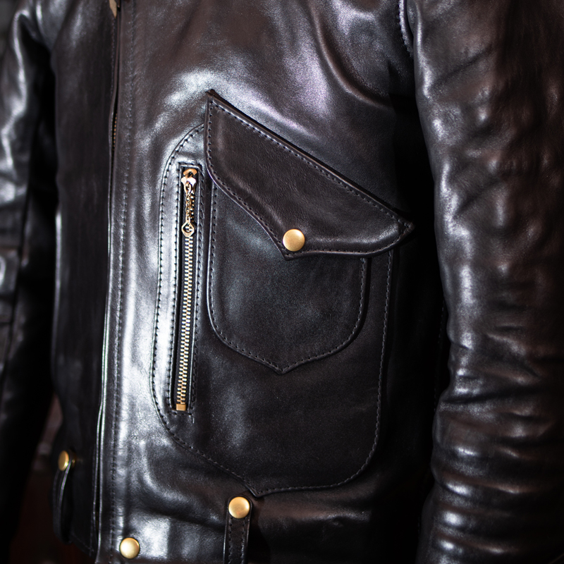 アビエイタージャケット(飛行服)を祖として生まれたダブルライダースジャケットは、そのディテールを引き継いでこのようなパッチポケット仕様を用いたデザインが特に1940年代以前に多く見受けられる。