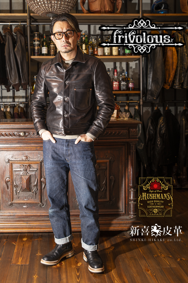 MUSHMANS Leather 唯一のボタンタイプジャケット【FRIVOLOUS/フリボラス】のリリースから7年の時を経て、2024年フルモデルチェンジを図り再度ラインアップに加わった【FRIVOLOUS-χ-/フリボラス-カイ-】。