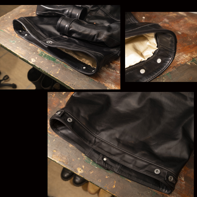 これをフルコピーしているレザージャケットの場合、革の取り都合の関係でサイドを接いでいる場合があっても、基本この仕様になっている場合が多い。