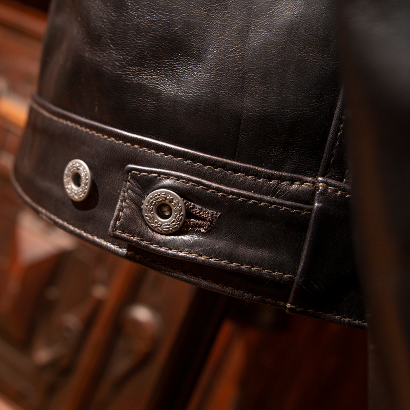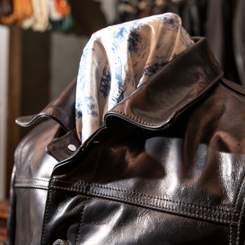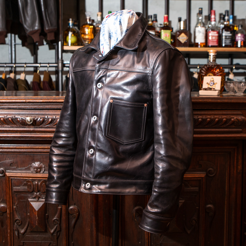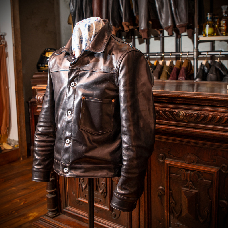 このFRIVOLOUSを新たにリリースした2017年当時、所謂デニムジャケットスタイルのレザージャケットがもてはやされ、猫も杓子も、、な状態となっていた事に薄っぺらさを感じた事で開発したモデル。