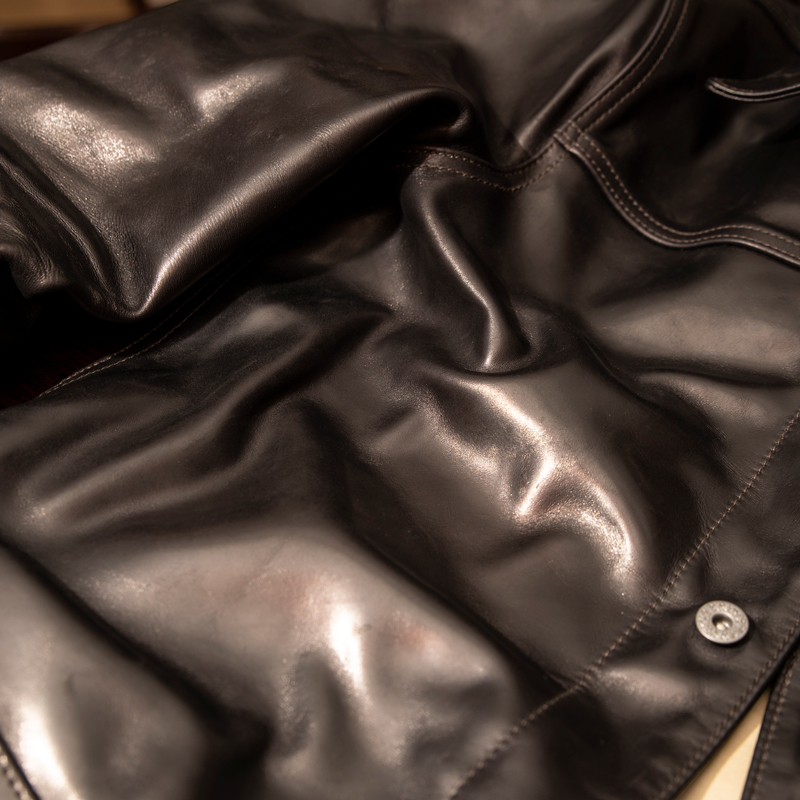 デニムジャケットを着用するシーズンや、その領域と同等の軽快さと、シャツジャケット的な要素を付加し、余計なデザインを極力省く事で、素材の良さと縫製技術の高さを感じていただける、真っ当なレザージャケットとなった。