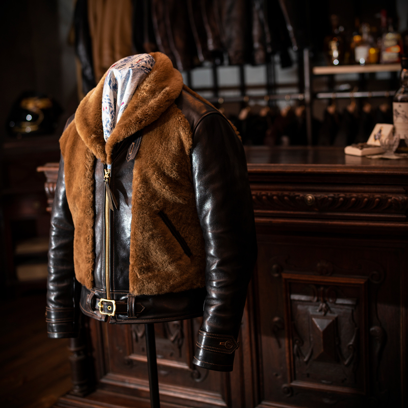 今作においては、MUSHMANS Leather初となる、Grizzly Style Sports Jacket 通称"熊ジャン"と呼ばれるモデル。