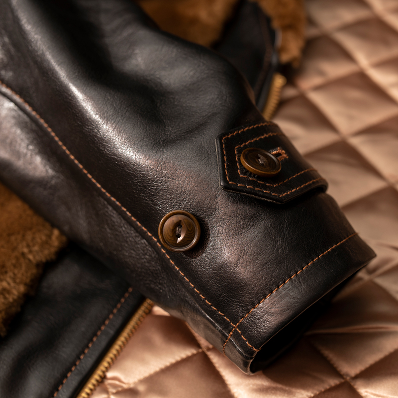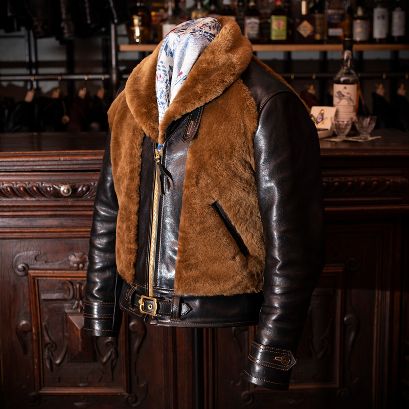 このグリズリージャケットは見た目にも冬季に使用いただきたいレザージャケットである。