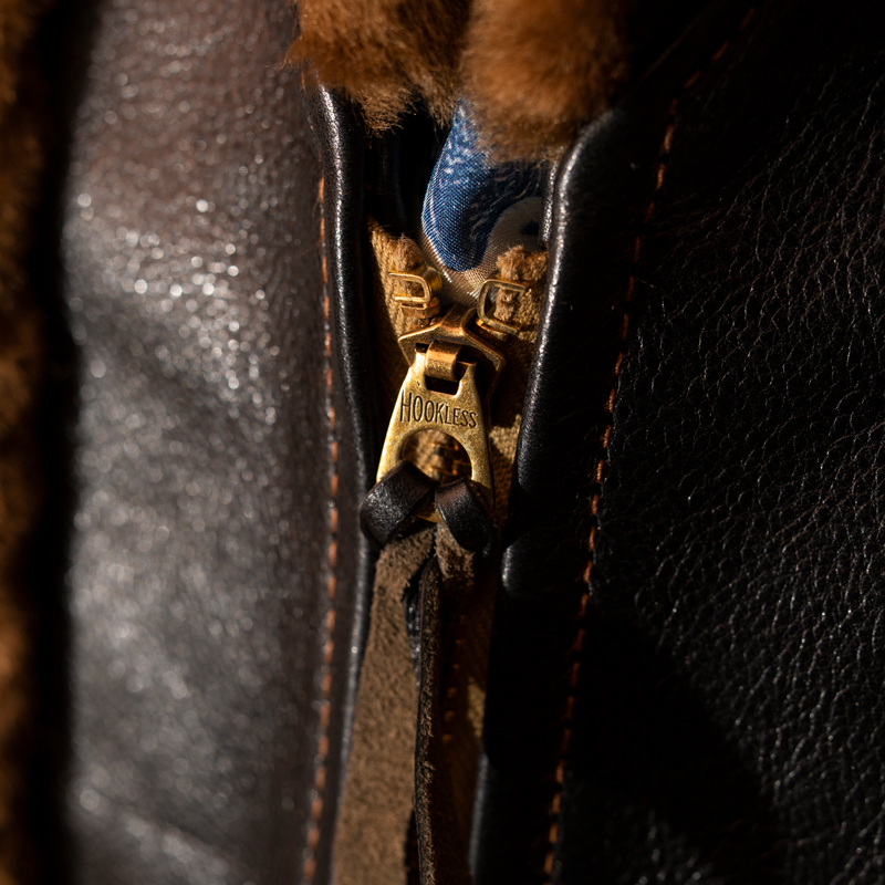 これを実現した事によって、MUSHMANS LeatherのDAREDEVIL-χ-やDEFENDERに使用する襟ボアにフィードバックする事にもなった。
