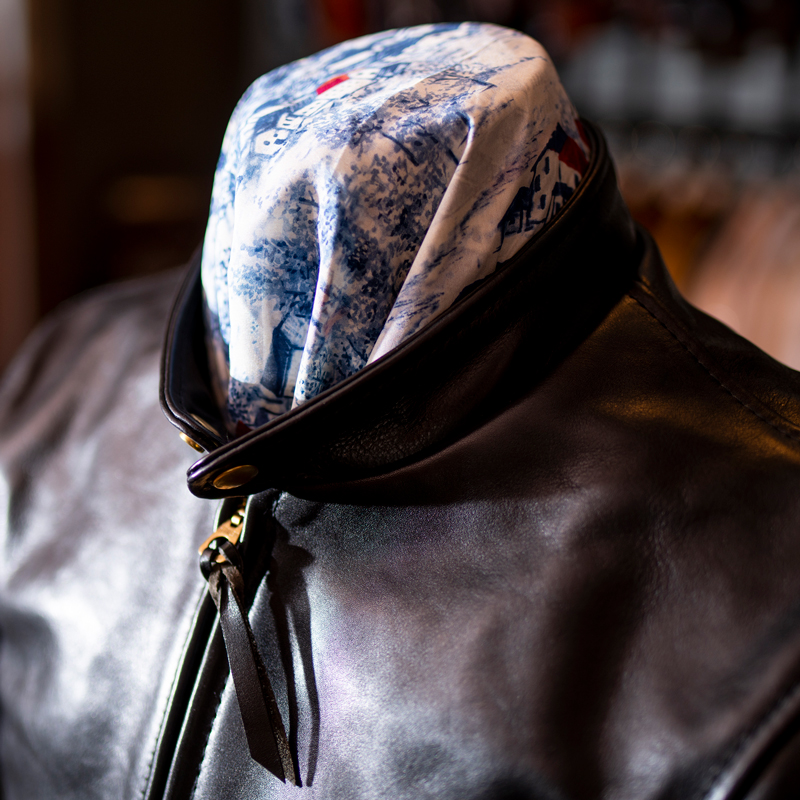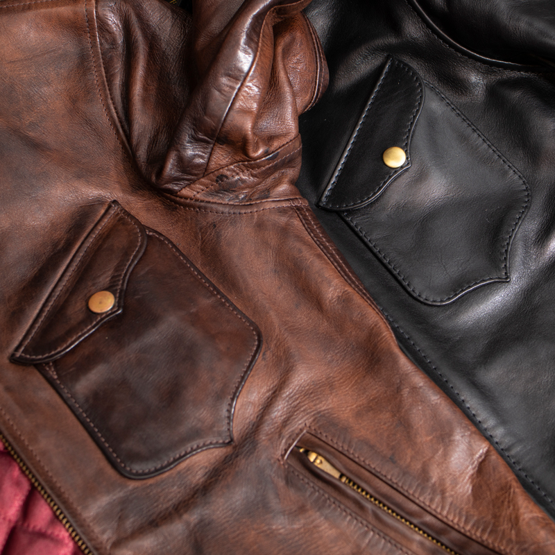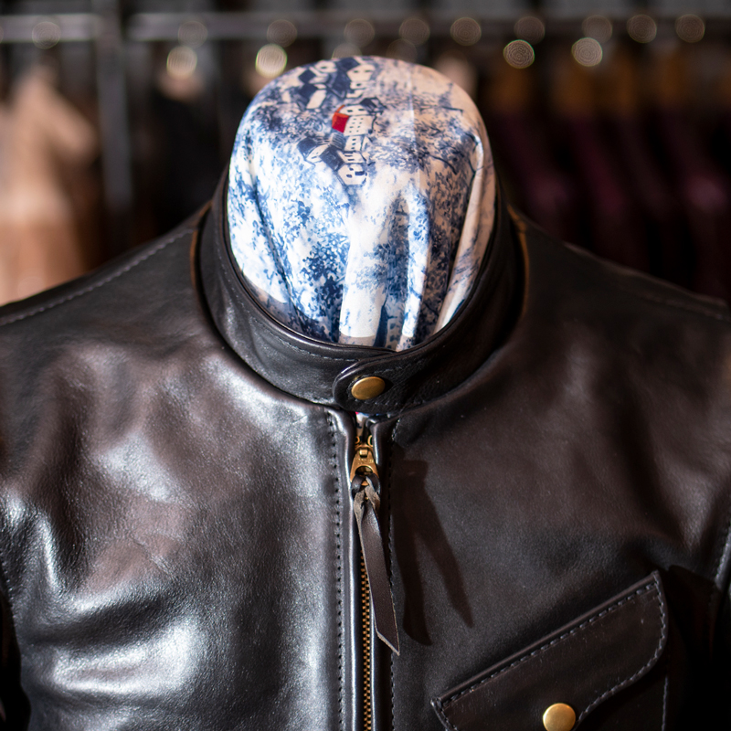 スタンドカラーのシングルライダースは、あくまで3シーズン用のジャケットであるという観点から、無駄を排除した仕様という訳だ。