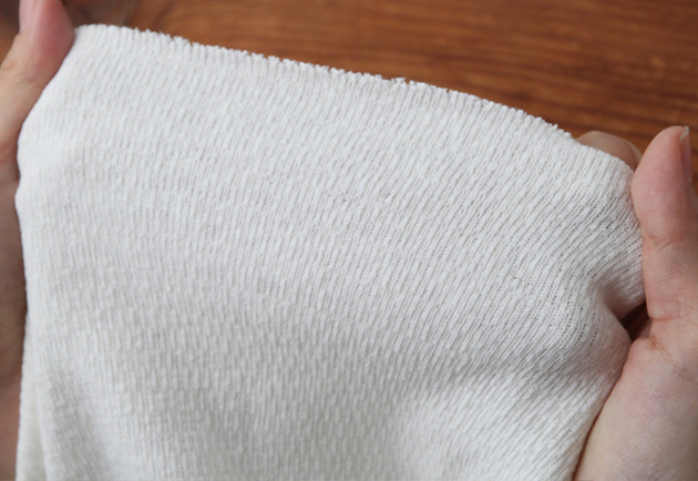 ハチの巣状の編み組織の中に、独特のネップ感が生まれるのはこのためなんですね。