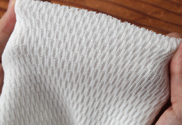 編み組織は、ハニカムメッシュと呼ばれるとおり、ハチの巣状の独特の凹凸感があります。