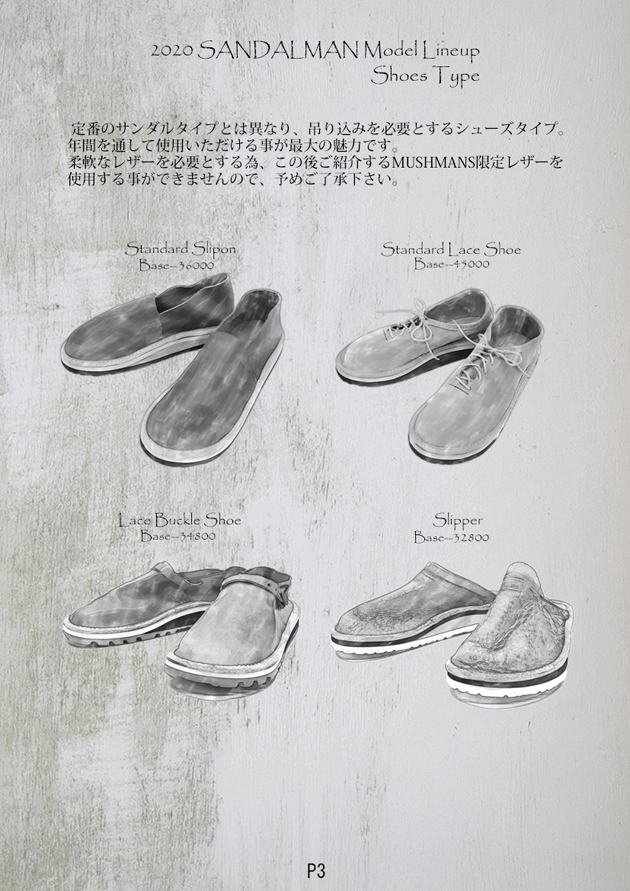 以下が10月19日から開催いたします【SANDALMANカスタムオーダー会】における、カスタムオーダーのカタログとなります。