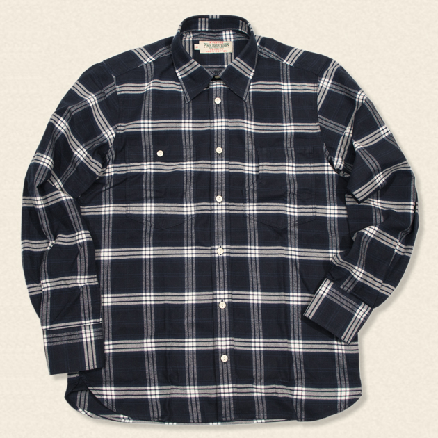 言ってしまうと、何の変哲も無いタダのネイビーとオフホワイトのチェックシャツ。・・なんですが、こういった配色のネルシャツって実は探してみると無かったりするんです。