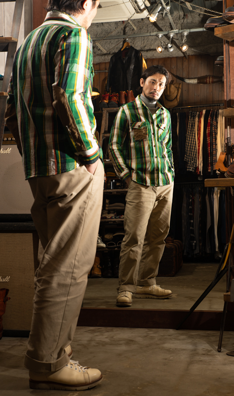 続きまして、ネルシャツとの組み合わせですが、