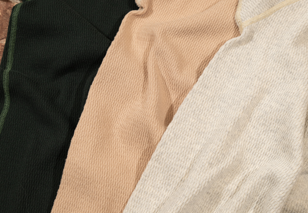 コットン100%で編みたてられたハニカムサーマルは、肌触りの優しさと安心感を得る事が出来ます。