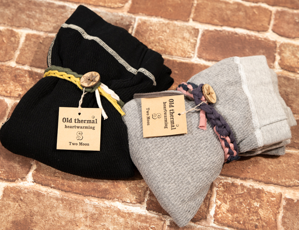Two Moonのサーマル生地は古い織機でしか作れないオールド感のある伸縮性と保温性に優れてます。