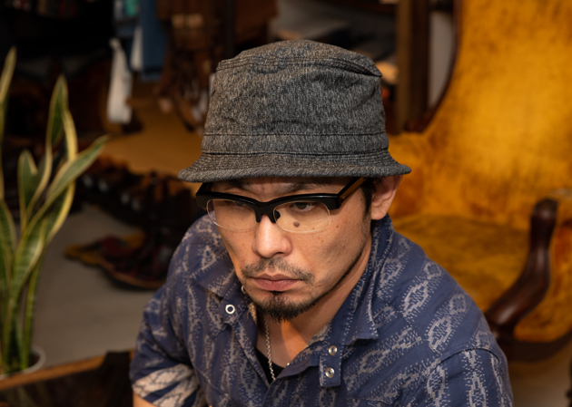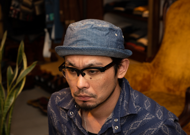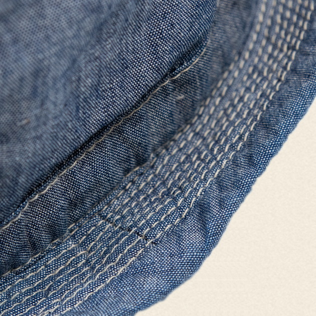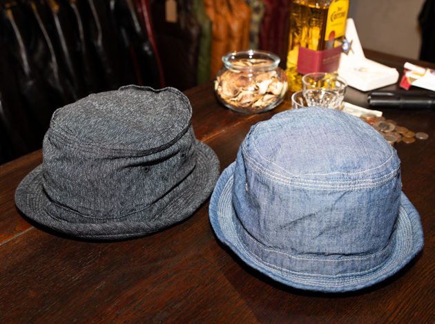 ポークパイハットにしては珍しいシャンブレーの生地。