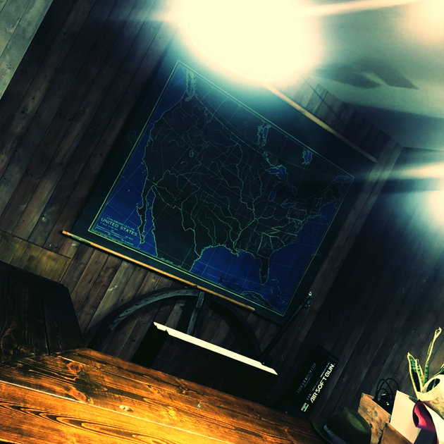 この待合室に関しては、当初ガレージ兼、倉庫兼、イベントスペースとして、旧MUSHMANS店舗より取り外して持ち込んだカウンターや壁材、アンティーク什器を設置し、旧MUSHMANS店舗を復刻するというコンセプトで進めてきたスペースでございます。
