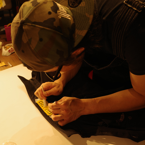 一着に要する時間・・・恥ずかしくて言えません(笑) とは言え、初回よりは効率も良くなって参りましたが、嬉しい事に大半のお客様からステンシルカスタムのご依頼をいただきますので、想像を絶する時間まで作業する事になります(笑)