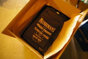SHIRTSとの相性を考えて、ボディーフロントには【MUSHMANS】ネームタグのみを取り付けスッキリとした印象を与え、バックのみにプリントを施しております。これによりフロントオープンでの着用時にもスッキリ着こなせます。