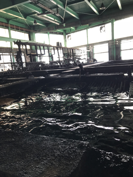 ベジタブルタンニン鞣しの場合、何種類ものピット槽に漬け込む行程がある為、これだけ大きくなければなりません。