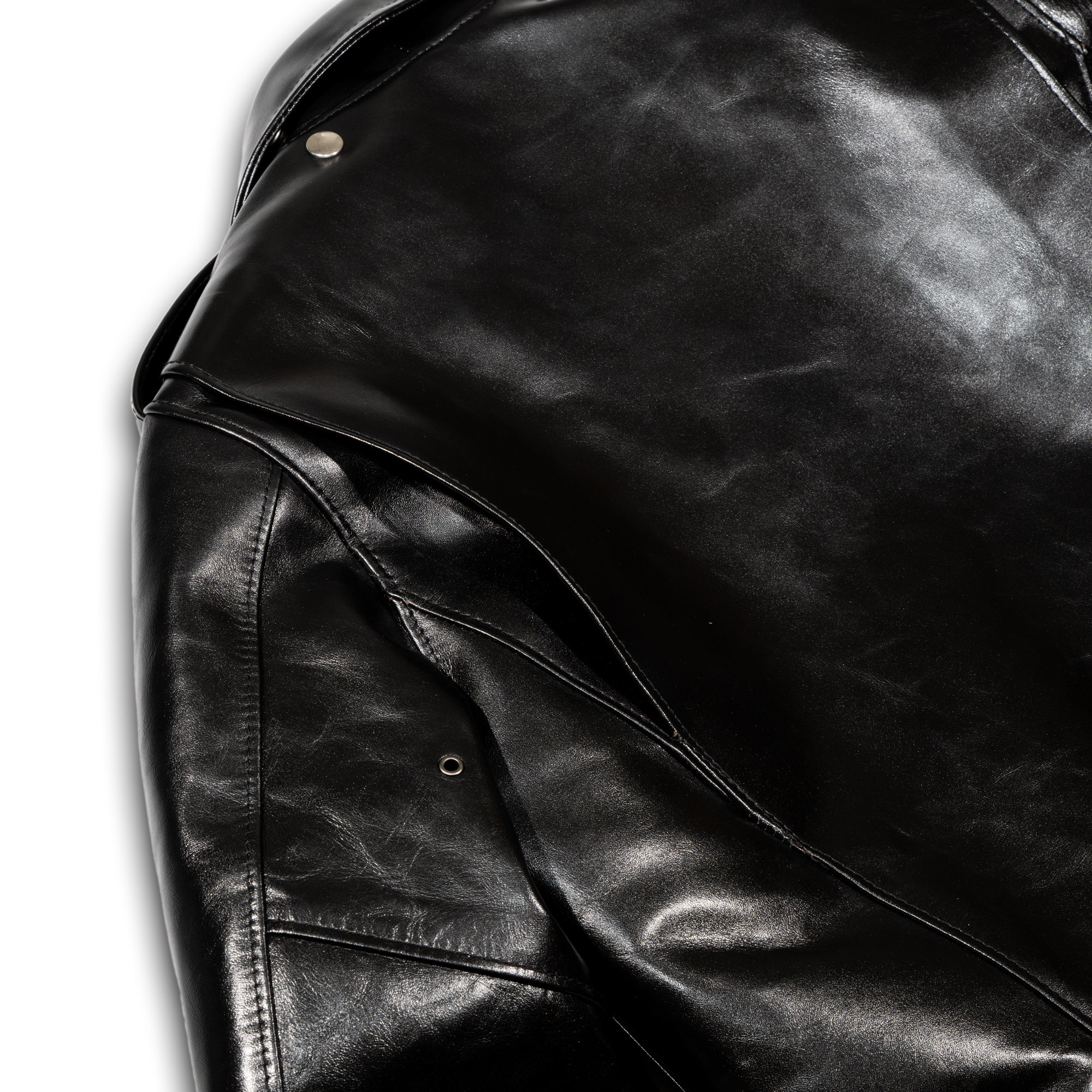 特にアームホールは前作と比べてスッキリとしたシルエットにしておりますが、現代販売されているダブルライダースのアームと比べたら少しだけゆったりした設計かもしれません。