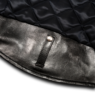 特にライダースという特性から考えた場合、降雨による雨濡れに効果があり、例えライニングまで浸透してしまうような濡れ方をしても大幅に縮んでしまうような事を回避できる仕様となっております。
