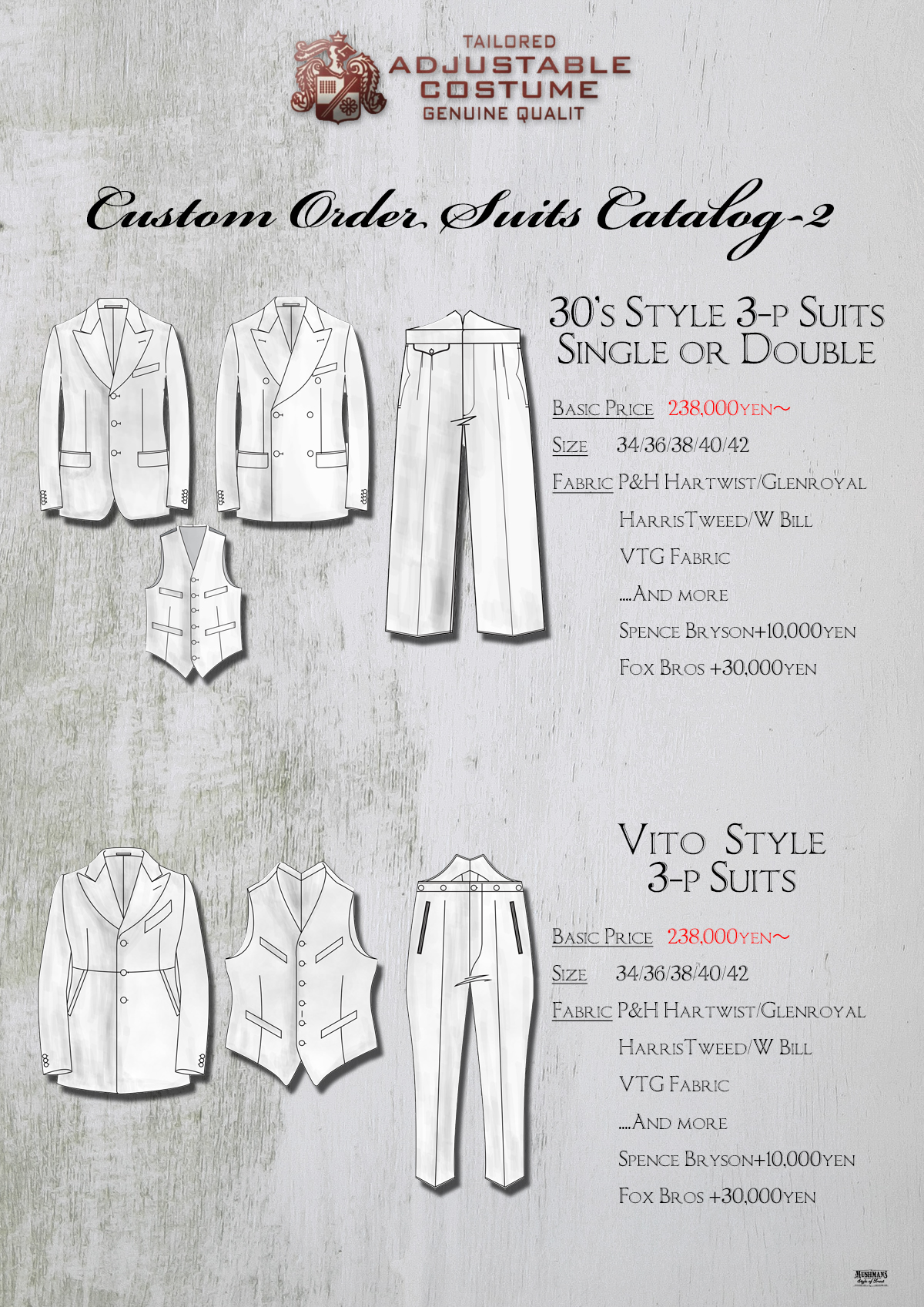 ※3Pスーツに関しては、基本的にVTGファブリックかインポートファブリックを使用します。※