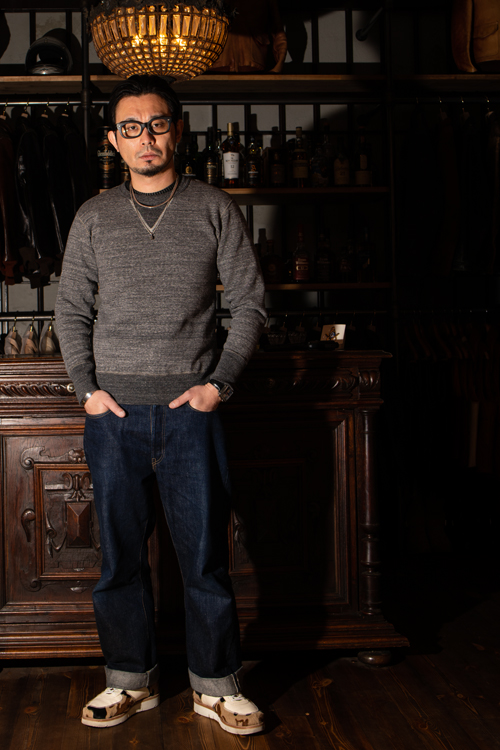 製作工場との共同開発により実現したこの生地はヴィンテージウエアさながらのラフ・ムラ感を発揮し、着こむほどに柔らかさが生まれるのが特徴です。