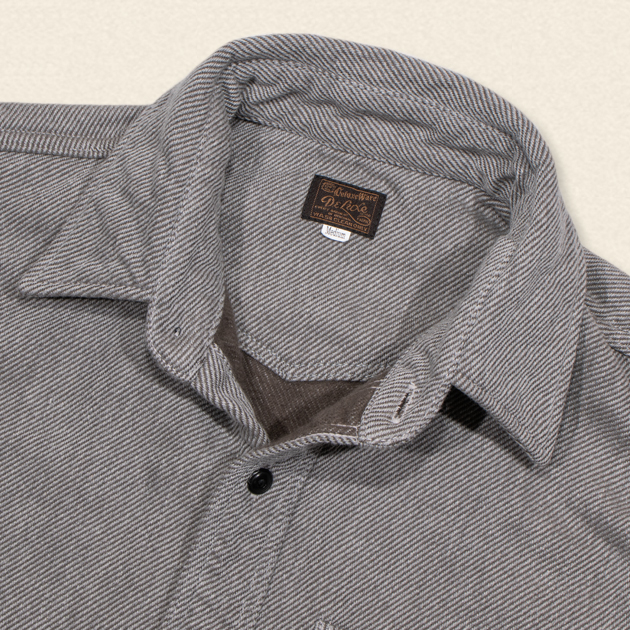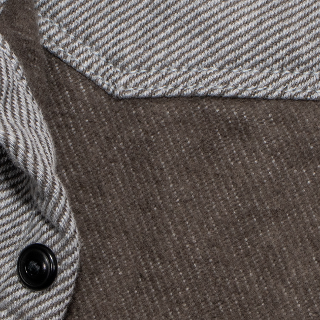 通常ですとウールが使用されることが多いシャークスキンですが、デラックスウエアではコットンでそれを構成し、起毛を加えることでウールのような質感と扱いやすさを両立したフランネルに仕上げております。