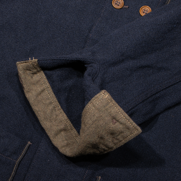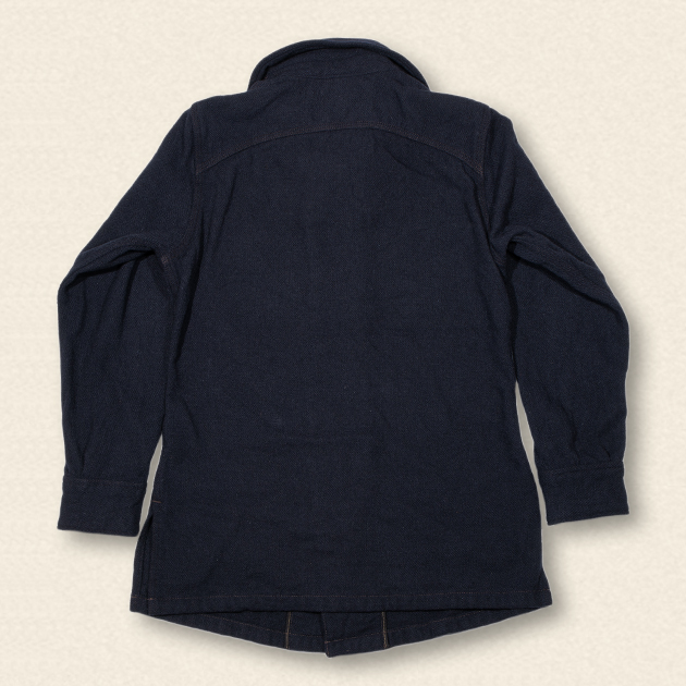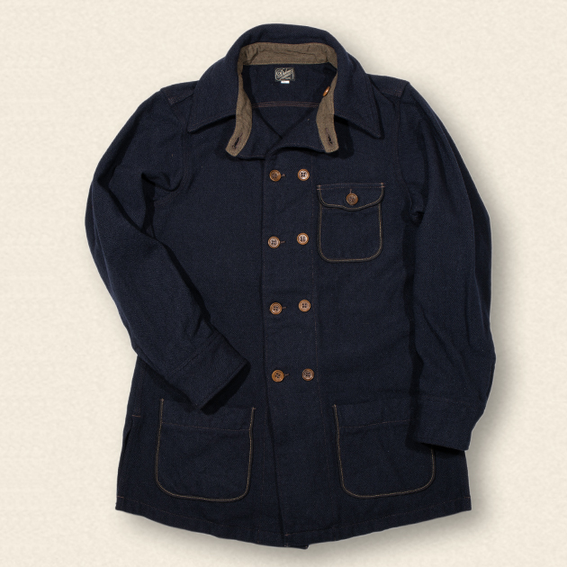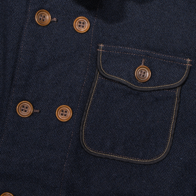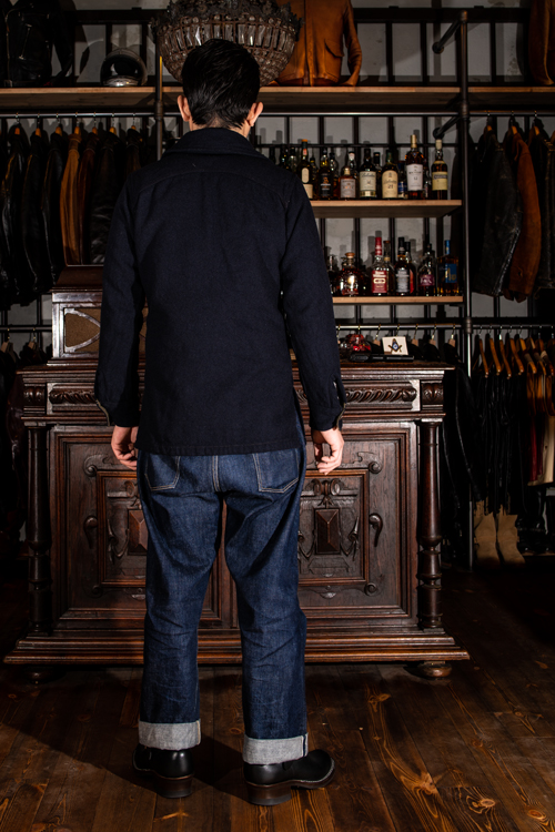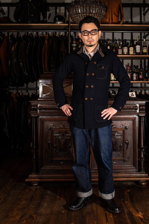 NAVYカラーのメルトンがどこか海軍っぽさを醸し、ボタン・パイピングがいいアクセントになっています。