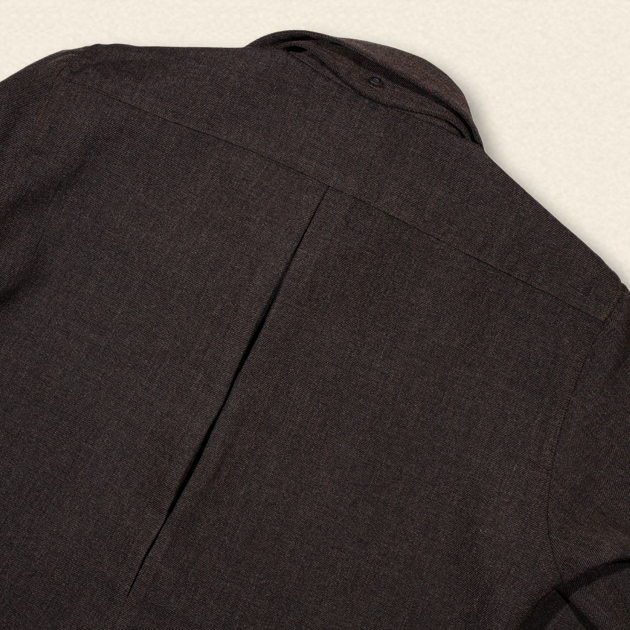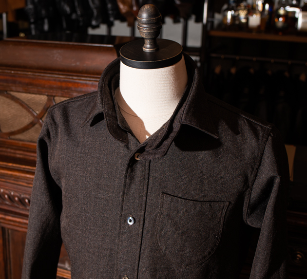 ポケット・前立て・前立てフラップ等、多くの部分を曲線で描き、柔らかな印象のシャツに仕上がっています。