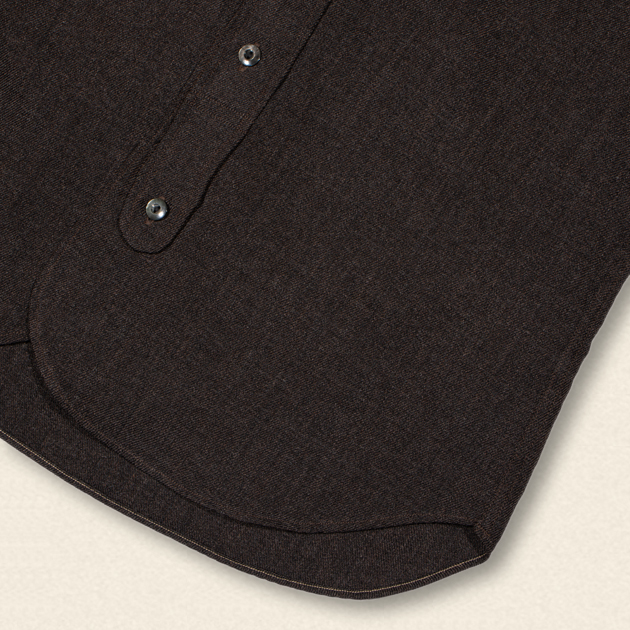 ボタンによる脱着で、バンドカラーシャツのようにも着用していただけ、二通りの着方をお楽しみいただけます。