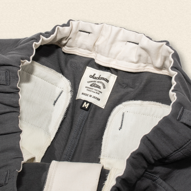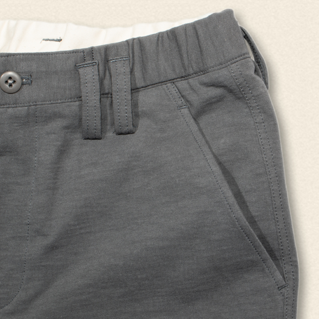 スウェットライクなカットソー素材でながら厚手ではなく、ハリのあるストレッチ性に優れた素材は、スウェットパンツによくある「ひざ抜け」も起こりにくくなっているのが特徴。